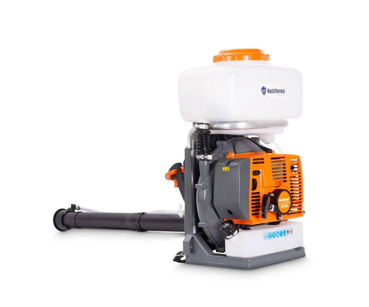 Holzfforma SR 420 este un atomizor cu motor pe benzină, cu o capacitate cilindrică de 56,5 cc, proiectat pentru a asigura o pulverizare puternică și o acoperire eficientă pe distanțe mari. Este ideal pentru aplicarea soluțiilor fitosanitare în livezi, vii, grădini sau culturi de câmp, datorită debitului ridicat și razei mari de stropire.