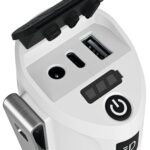Dispozitivul este ușor de utilizat datorită comutatoarelor separate pentru alimentarea USB și pentru lanternă. Indicatorul LED de stare afișează permanent nivelul de încărcare, iar cârligul metalic pentru prindere la curea permite transportul comod și sigur.